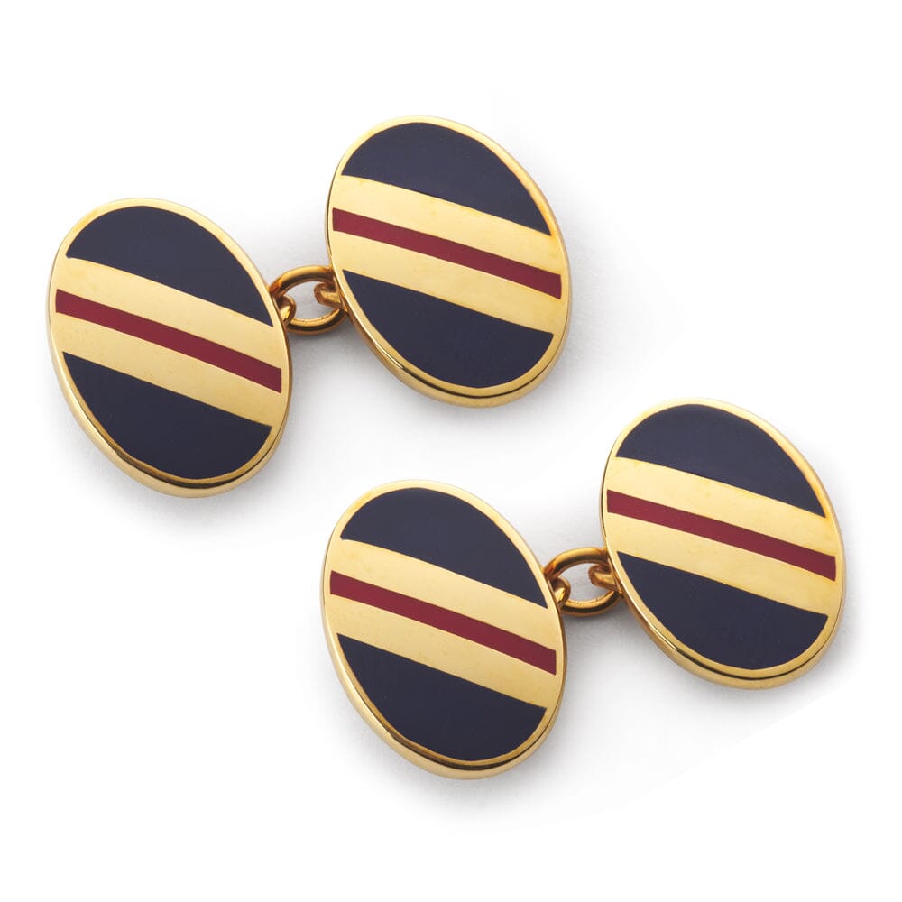 Elevate your style with our exquisite chain cufflinks. Expertly handcrafted in England, these cufflinks feature a classic design enhanced by the vibrant allure of vitreous enamel. The meticulous enameling process involves fusing powdered glass to the base, creating a durable and radiant finish that exudes sophistication.