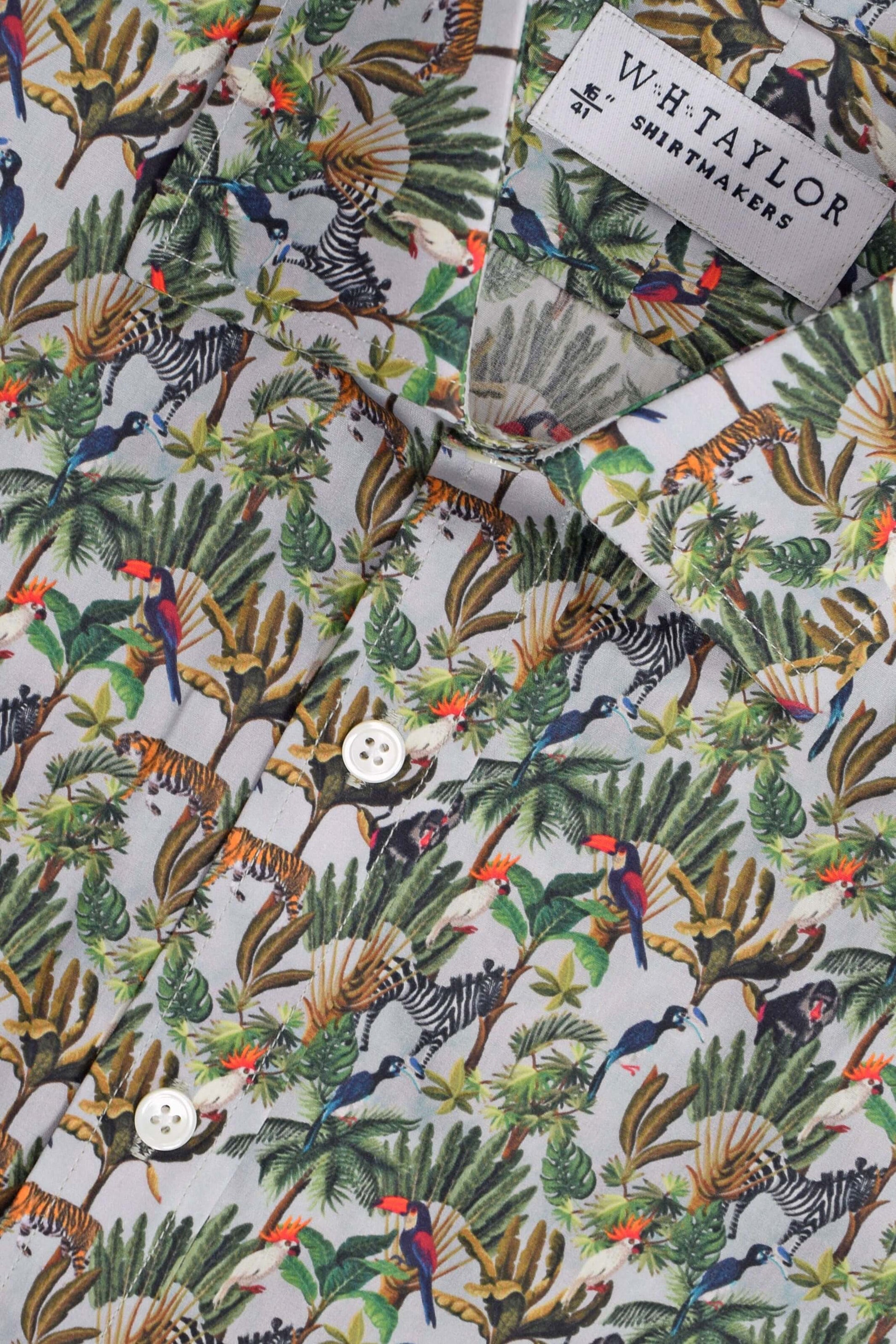 Discover the perfect balance of boldness and comfort with the Jungle Pattern White Men's Bespoke Shirt. Featuring an intricate jungle-inspired design on a crisp white fabric, this shirt brings a fresh, natural vibe to your wardrobe. Tailored precisely to your measurements, it offers a comfortable fit that supports your confidence throughout the day. Whether for work or casual outings, this bespoke shirt gently enhances your style with a touch of adventurous elegance.
