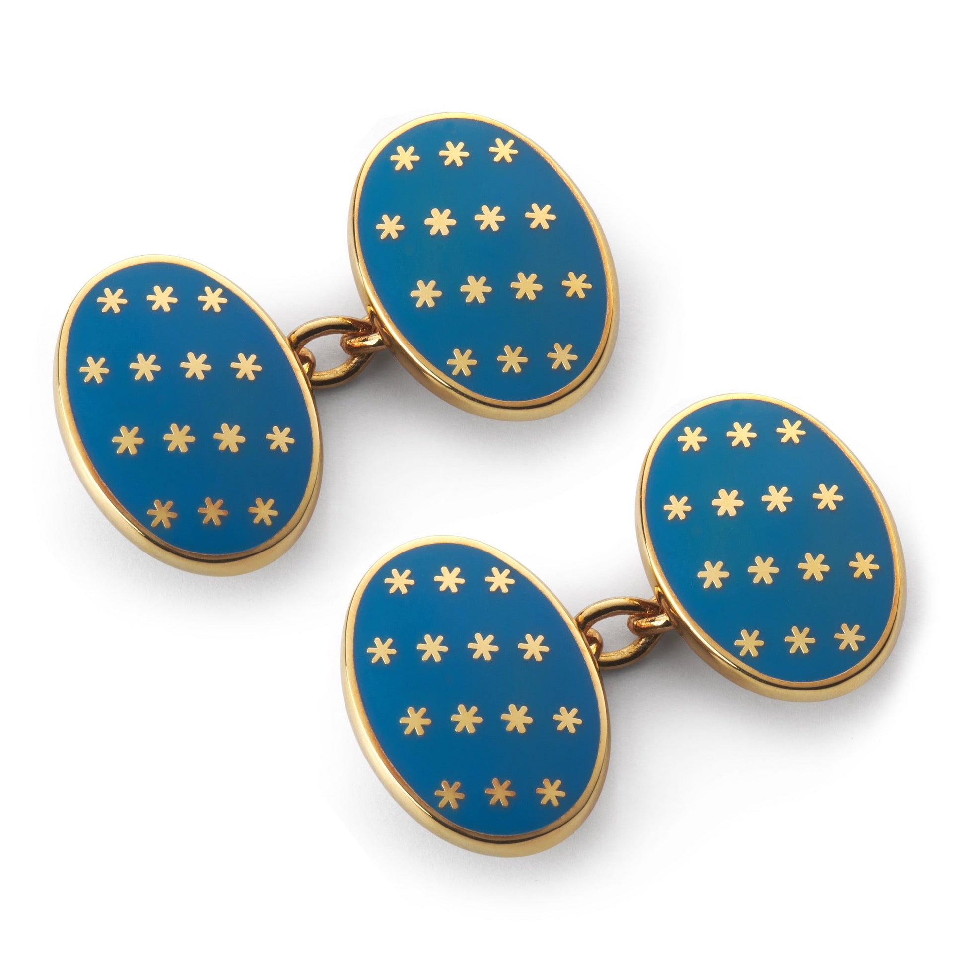 Elevate your style with our exquisite chain cufflinks. Expertly handcrafted in England, these cufflinks feature a classic design enhanced by the vibrant allure of vitreous enamel. The meticulous enameling process involves fusing powdered glass to the base, creating a durable and radiant finish that exudes sophistication.
